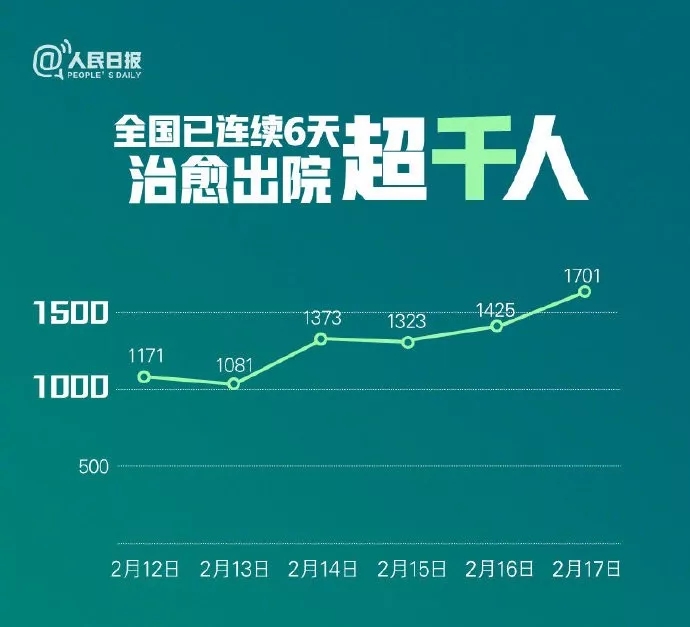 拐點不好判斷,但情況是在好轉(zhuǎn)。全國連續(xù)6天治愈出院人數(shù)突破千人大關(guān)。