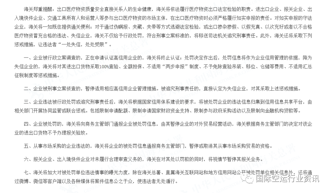對(duì)于通過偽瞞報(bào)、夾藏、夾帶等方式逃避法定檢驗(yàn),或出口摻雜摻假、以假充真、以次充好或者以不合格醫(yī)療物資冒充合格的違法、失信企業(yè),海關(guān)不僅給予行政處罰,符合刑事立案標(biāo)準(zhǔn)的,將移送司法機(jī)關(guān)追究刑事責(zé)任。