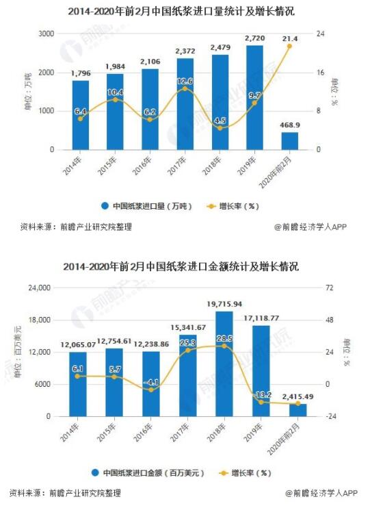 2020年1-2月中國紙漿進口量將近470萬噸