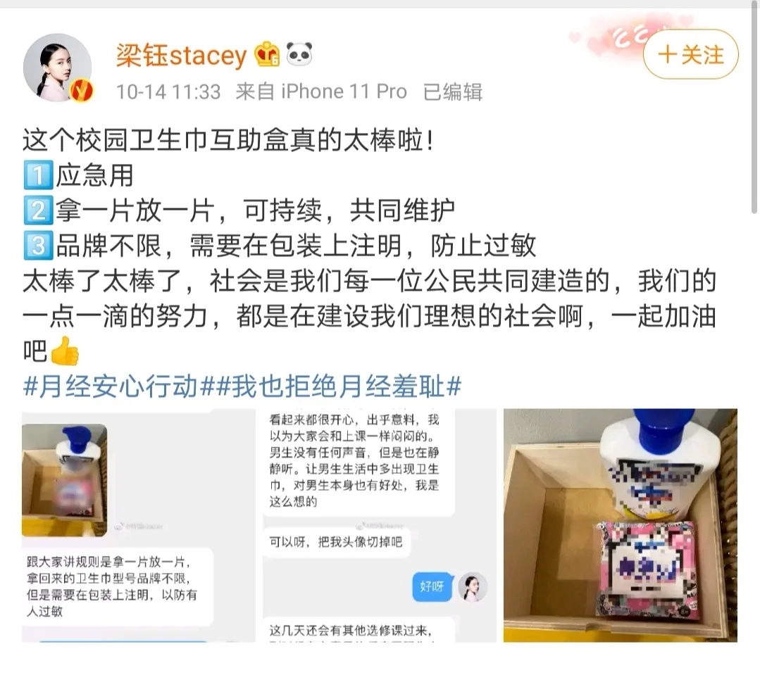 近日,“衛(wèi)生巾互助盒”火了,不斷在微博、朋友圈、空間刷屏。