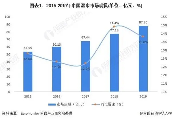 近年來,我國濕巾行業(yè)發(fā)展積極向好,市場規(guī)模增速遠高于全球濕巾行業(yè)市場規(guī)模,2019年我國濕巾行業(yè)市場規(guī)模達到了87.8億元,2015-2019年復合增長率在13.16%。.jpg)