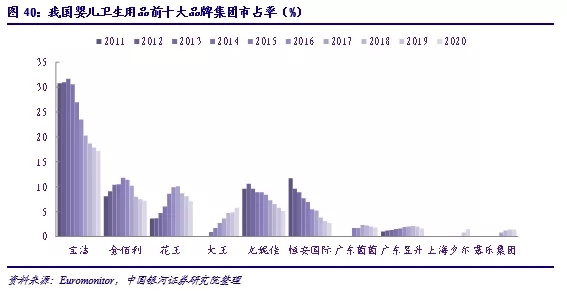目前市場競爭格局的變化說明我國嬰兒衛(wèi)生用品市場尚未成熟,仍存在發(fā)展的較大空間,在消費升級和市場體量擴張下外資企業(yè)和國內(nèi)新銳企業(yè)都有規(guī)模增長、擴張市場份額的機會。短期內(nèi)我國嬰兒衛(wèi)生用品市場的行業(yè)集中度可能不會快速回升,新銳品牌的加入推動了產(chǎn)品升級也給行業(yè)帶來了活力和更多競爭,國產(chǎn)品牌具有本土化的電商營銷能力與新渠道把控力,以及適應性更強的新品迭代能力,因此和外資品牌的拉鋸戰(zhàn)可能會持續(xù)進行。長期來看,參考女性衛(wèi)生用品市場的發(fā)展路徑,市場成熟后外資品牌的品牌效應會逐步顯現(xiàn),未能成功樹立品牌影響力的國產(chǎn)新銳品牌或?qū)⒅鸩酵顺鍪袌?,行業(yè)屆時將再次向龍頭集中聚攏。