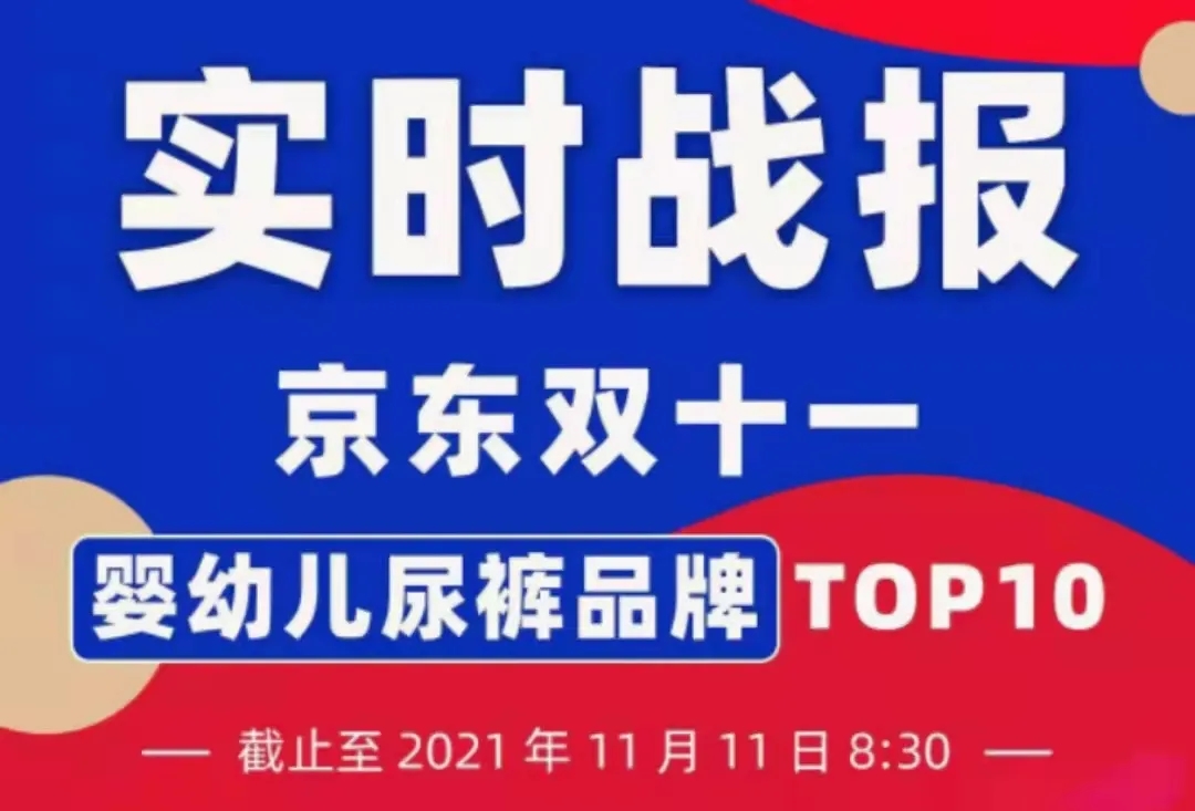 2021年10月20日晚8點(diǎn),京東雙十一預(yù)售正式開啟,截止到11月11日8:30,京東雙十一紙尿褲排名榜單TOP10出爐。