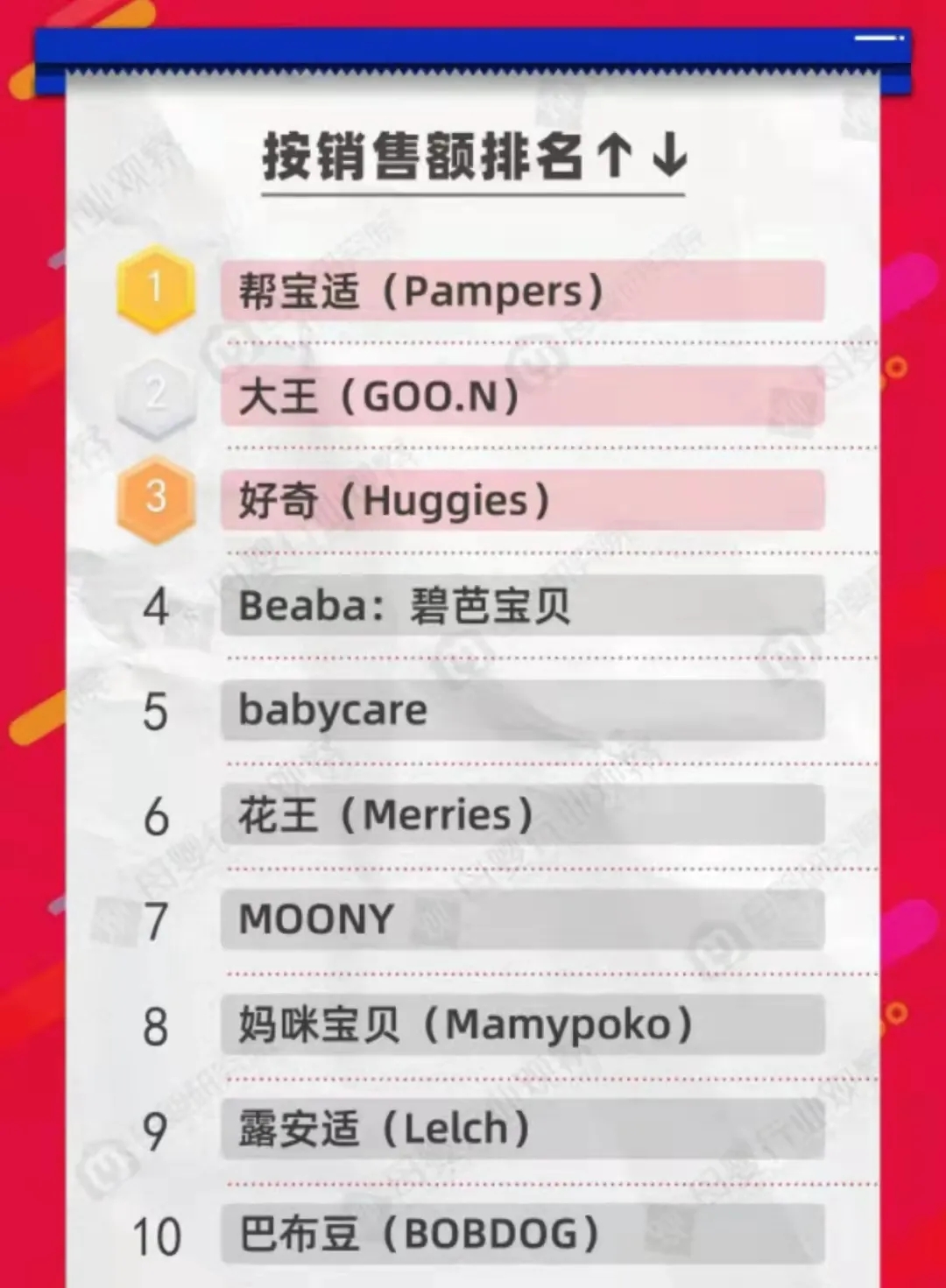 以上榜單是截止到今天早上9點(diǎn),雙十一紙尿褲終極排名榜單晚上12點(diǎn)才會(huì)揭曉,最終榜單如何,大家拭目以待吧!