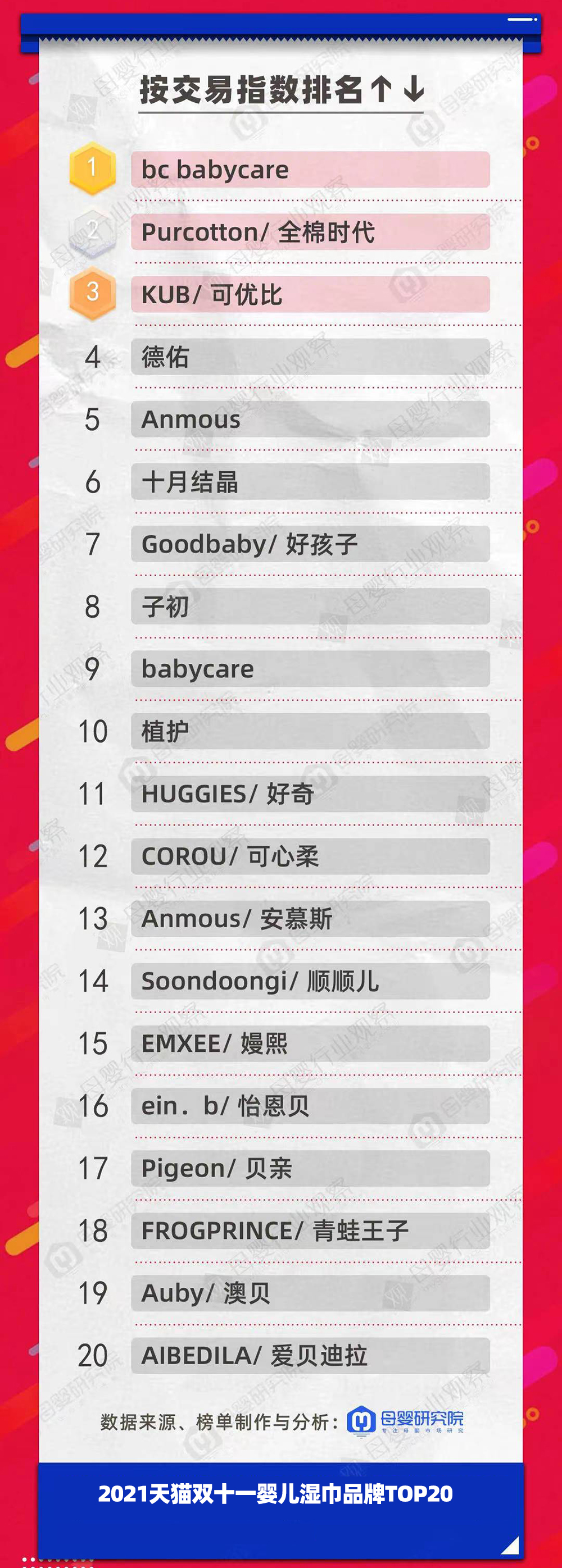 紅色小象、EMXEE嫚熙和Purcotton全棉時(shí)代優(yōu)異地拿下了本次雙11寶寶洗浴品牌的前三。而2020年雙11時(shí),位居前三的是紅色小象、Purcotton全棉時(shí)代和蒂愛(ài)。