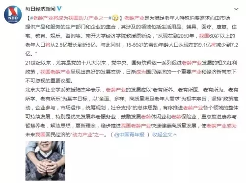 隨著中國(guó)老齡化進(jìn)程的加快,產(chǎn)業(yè)發(fā)展的機(jī)遇也逐漸到來(lái)。近日,#老齡產(chǎn)業(yè)將成為我國(guó)動(dòng)力產(chǎn)業(yè)之一#引發(fā)網(wǎng)民熱議~